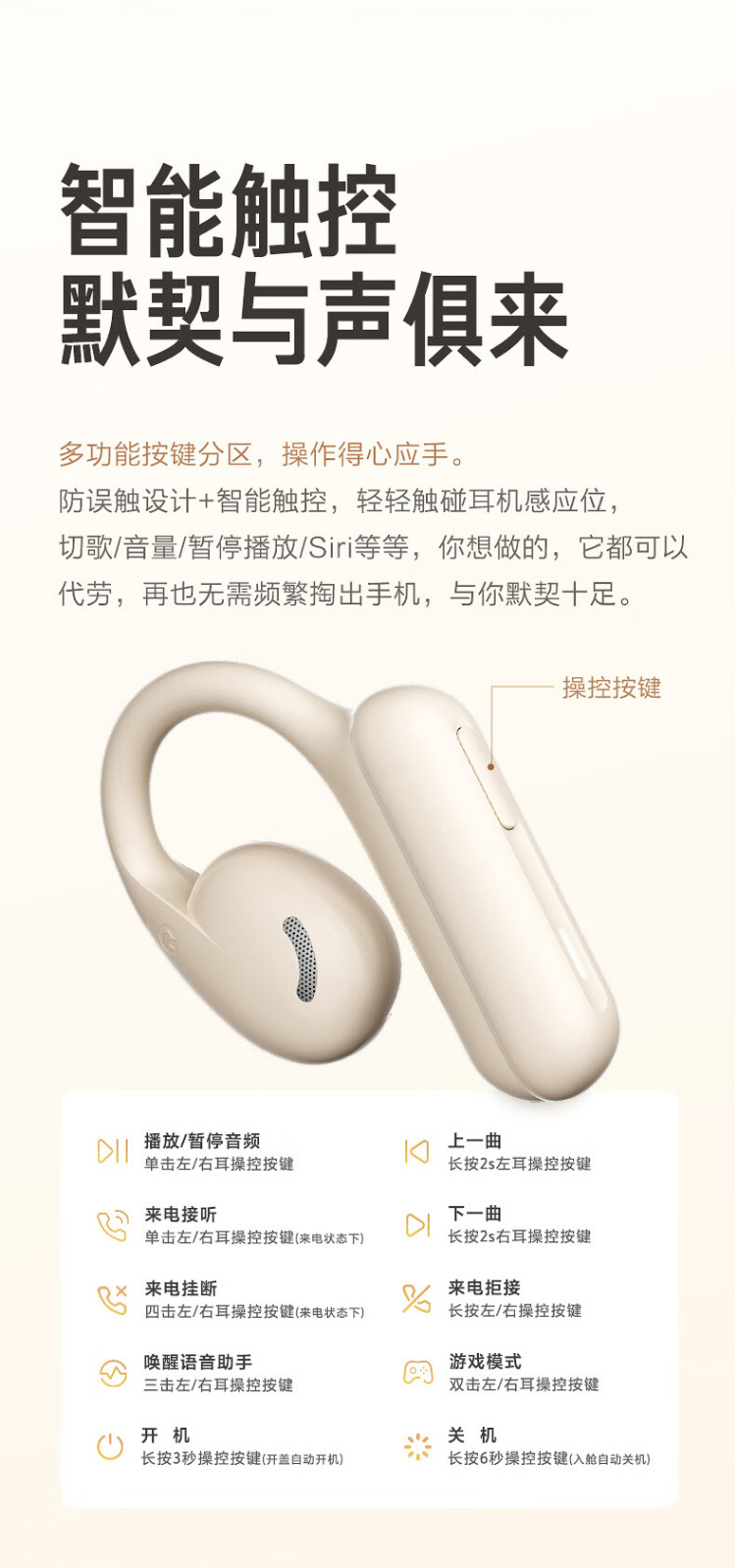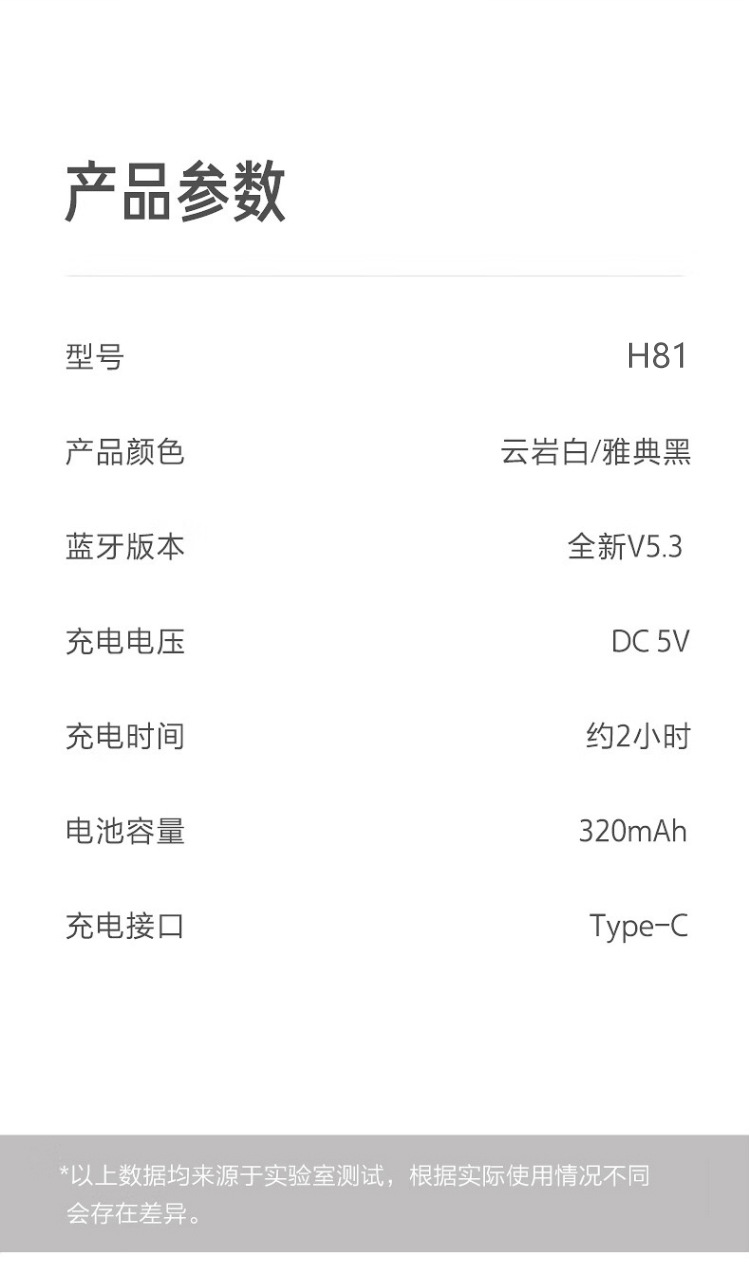 耳机单次工作时间:音乐6H/通话5H